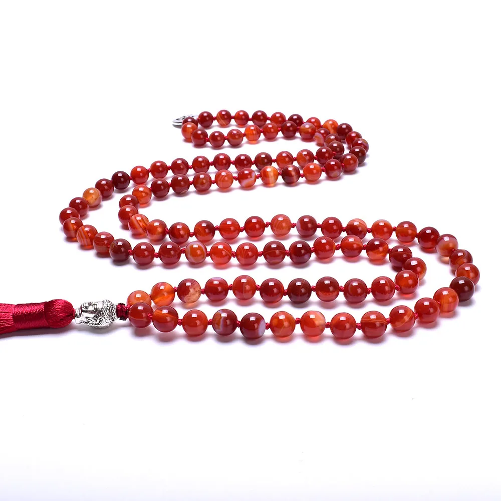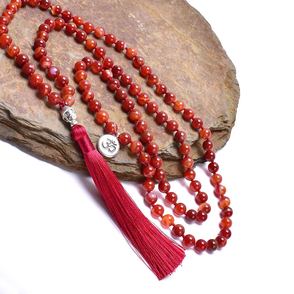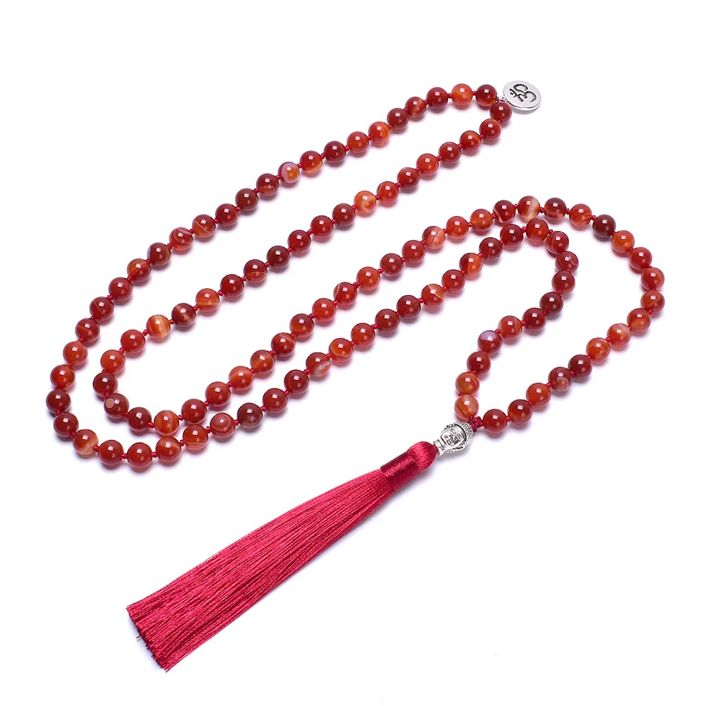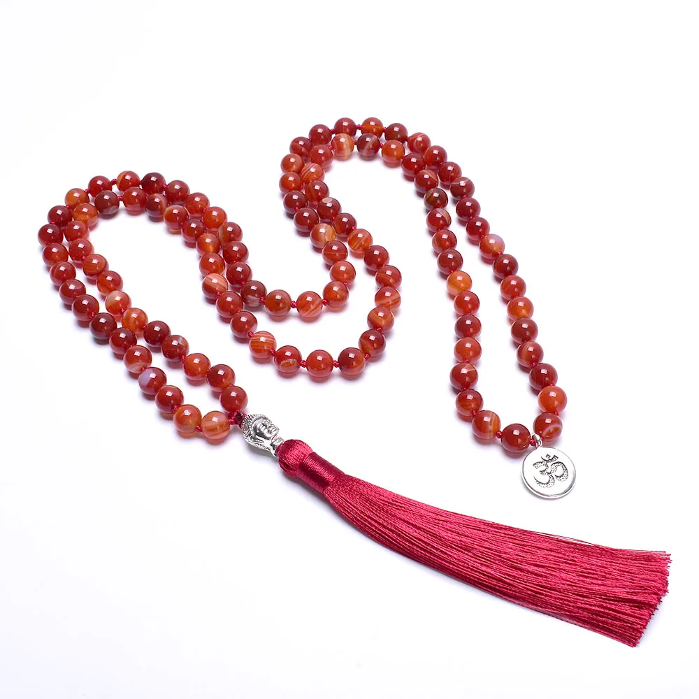 Lindo Colar Japamala de 108 contas em pedra Cornalina com tassel, feito à mão.