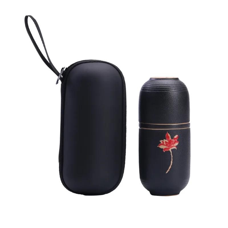 Lindo Copo de Chá Portátil Japonês, para você beber seu delicioso chá aonde quiser. Em cerâmica preta, com case.